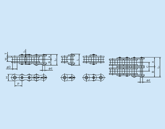 Link Plate: Thickness T: 6.4 Thickness t: 4.07 Height H: 52.2