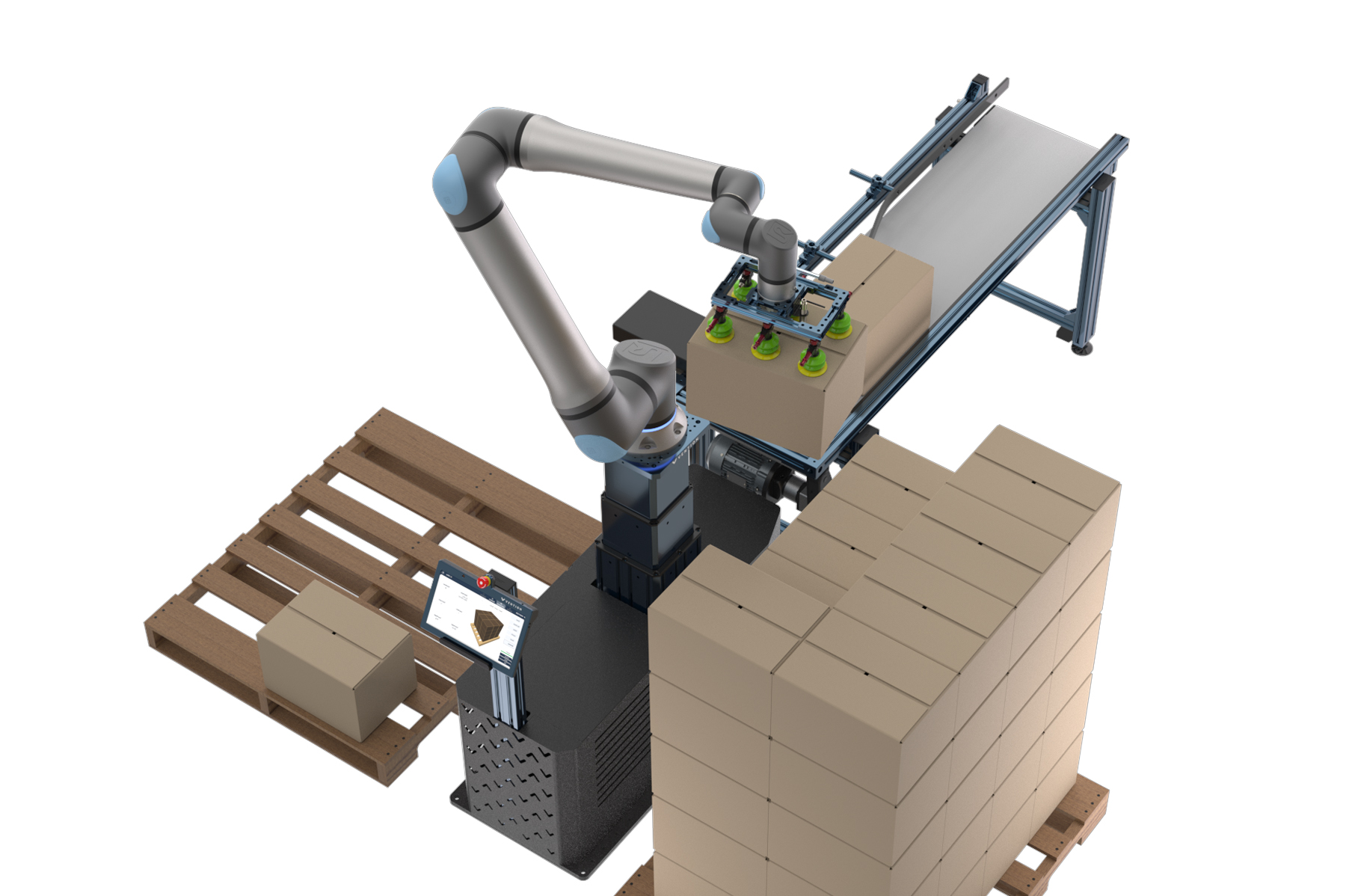 Có sẵn với 3 cấu hình: chiều cao cố định UR10e, chiều cao cố định UR20 và cột thu gọn UR10 Công suất cao lên tới 13 lần bốc hàng mỗi phút.